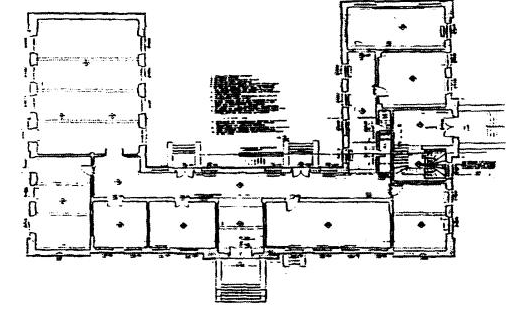 | Κάτοψη του κτηρίου των Εκπαιδευτηρίων. Όπως μπορούμε να δούμε, το κτήριο είναι χτισμένο σε σχήμα Π. |