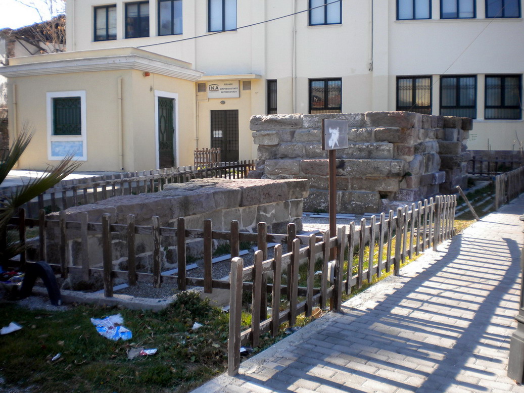 Απ' τα αρχαιολογικά ευρήματα στη στεριά γύρω απ’ το λιμάνι επιβεβαιώνεται η εμπορική και λοιπή δραστηριότητα που αναπτυσσόταν εκεί. Το 1928 κατά τις εκσκαφές για την ανέγερση της "Προσφυγικής Αγοράς", ήρθε στο φως στοά του 3ου π.Χ. αιώνα μήκους 15 περίπου μ. με κιονοστοιχία οκταγωνικών κιόνων και μια δεύτερη μικρότερη στοά στα Νοτιοδυτικά της Αγοράς. Το 1961 κοντά στο ΙΚΑ βρέθηκε Ρωμαϊκό οικοδόμημα με κεντρικό αίθριο και γύρω δωμάτια. Αργότερα σε ανασκαφή στην οδό Μαβίλη και Λόγγου βρέθηκε το ιερό του Μαλόεντος Απόλλωνος, που οι παλαιότερες φάσεις του χρονολογούνται στον 10ο αι. π.Χ. και σε ανασκαφή στην οδό Μεραρχίας Αρχιπελάγους (οικόπεδο Πειραματικού Γυμνασίου) βρέθηκε το Ιερό της Κυβέλης.