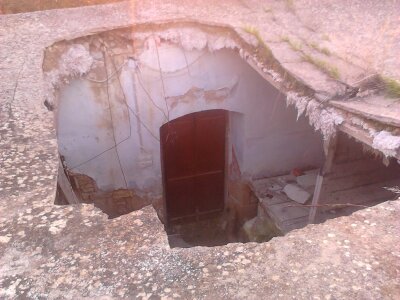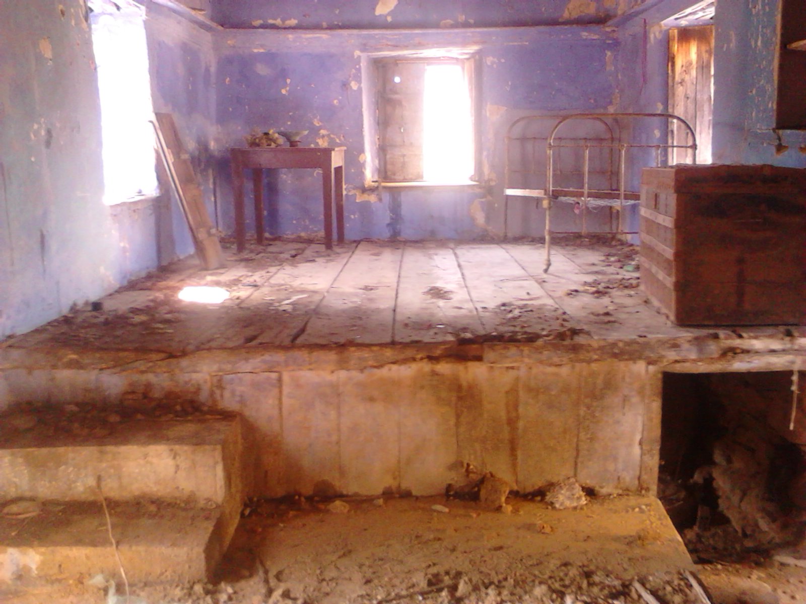 | Η πεσμένη οροφή του σπιτιού του Ροδάκη. |