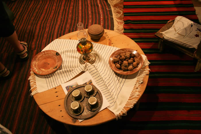 Ο σύλλογος έχει ήδη στήσει στη μέση του δρόμου ένα τραπεζάκι όπου θα τοποθετηθεί το δοχείο και γύρω-γύρω μικρά χαλιά, για να κάτσουν οι κοπέλες. Μία-μία κοπέλα βάζει το χέρι της μέσα στο αγγείο και βγάζει ένα μήλο που επάνω έχει χαραγμένο ένα από τα αρχικά ενός ονόματος που αντιστοιχούν στο “ριζικό” κάθε κοπέλας και μια άλλη απαγγέλλει ταυτόχρονα τυχαίες μαντινάδες. Οι μαντινάδες είναι επηρεασμένες απλώς και μόνο από τη θέα του ριζικαριού, αφού η μαντιναδολόγος δεν ξέρει σε ποιον ανήκει το κάθε ριζικάρι. Η μαντινάδα που αντιστοιχεί στο μήλο της κάθε κοπέλας θεωρείται ότι προμηνάει το μέλλον της και σχολιάζεται από τους υπόλοιπους, που προτείνουν τη δική τους ερμηνεία σε σχέση με την ενδιαφερόμενη. Μία από αυτές τις μαντινάδες θα μπορούσε να είναι: Σα μάθει ο σκύλος γράμματα κι η γάτα να διαβάζει, τότε και 'συ θα παντρευτείς να κάμει ο κόσμος χάζι.