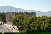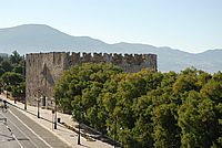 Κοντά στον πύργο αυτό διατηρείται ακόμη η τοξωτή δεύτερη πύλη του κάστρου, η οποία βλέπει προς τις "καμάρες" του υδραγωγείου του. Η πύλη αυτή ήταν εξαιρετικά χρήσιμη σε περίπτωση πολιορκίας, διότι μέσω αυτής οι πολιορκημένοι μπορούσαν να επικοινωνούν με τον έξω κόσμο με αγγελιοφόρους.