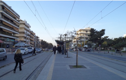 | Εικόνα της πόλης από τις γραμμές του τραμ |
