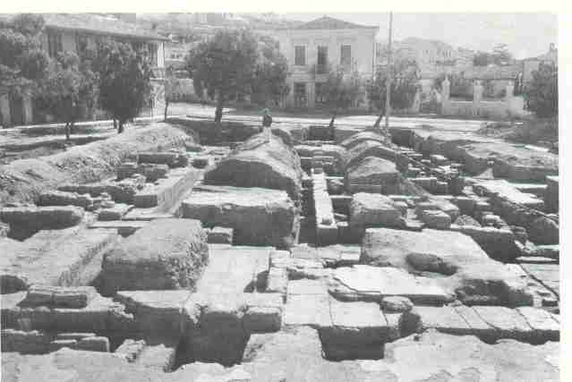 Η σημερινή πλατεία Ηρώων κατά την ανασκαφή της το 1937 (Πηγή: Τραυλός 1974) |