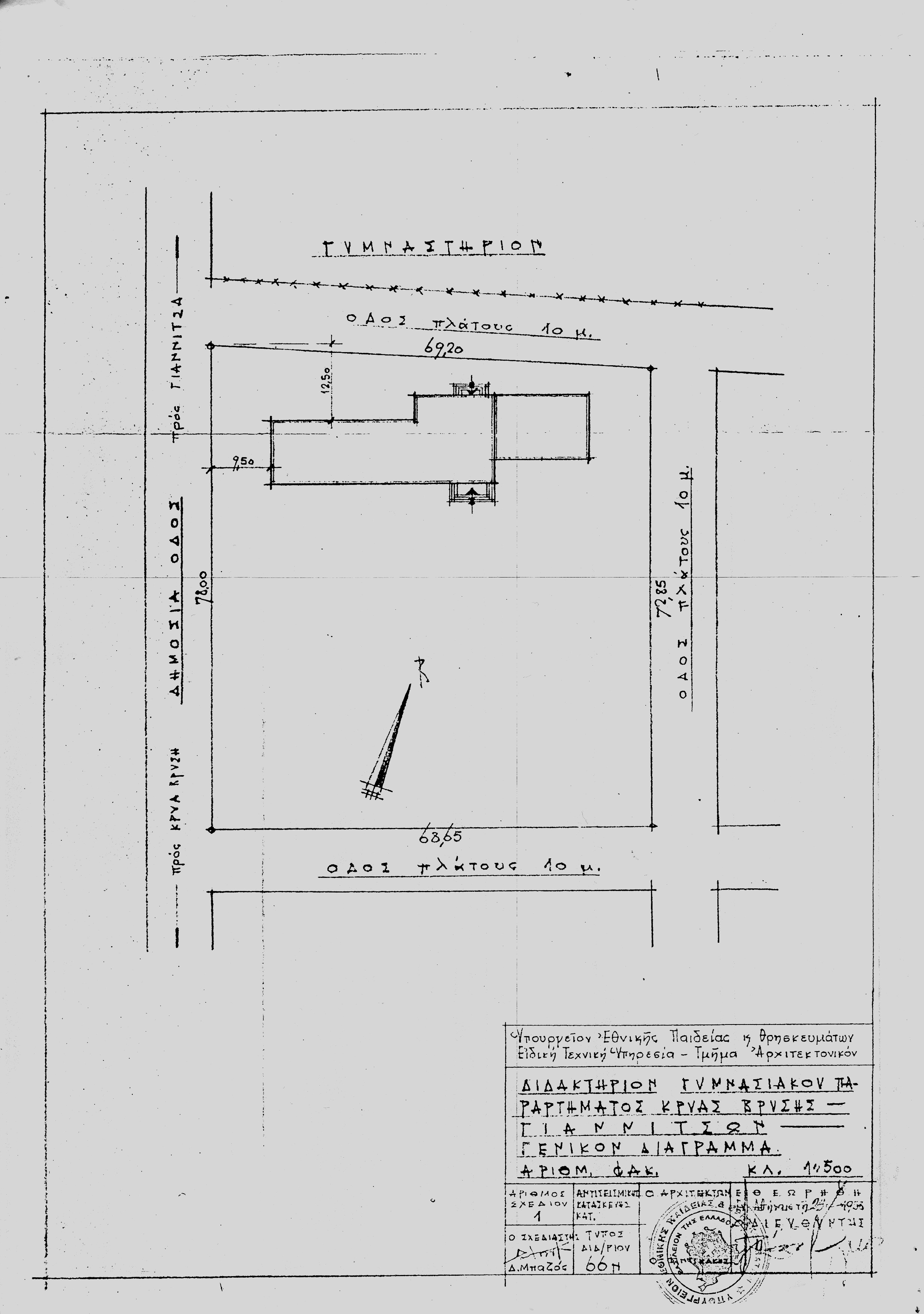 Έγκριση αρχιτεκτονικής μελέτηςγια την ανέγερση του "Γυμνασιακού παραρτήματος Κρύας Βρύσης", 27/8/1958. |