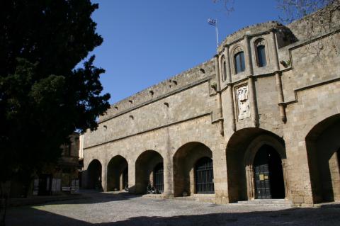 Η οικοδόμησή του άρχισε το 1440 από τον Μεγάλο Μάγιστρο de Lastic (ντε Λαστίκ), με χρήματα που άφησε με το θάνατό του ο προκάτοχός του Fluvian , αλλά ολοκληρώθηκε 49 χρόνια αργότερα από τον Μάγιστρο D' Aubusson. Πρόκειται για κτίσμα γοτθικού ρυθμού με αναγεννησιακά στοιχεία. Οξυκόρυφη πόρτα αποτελεί την είσοδό του, η οποία καλύπτεται με υστερογοτθικά σταυροθόλια. Το κτίριο περιλαμβάνει εσωτερική αυλή που πλαισιώνεται από διώροφη στοά, στην οποία ανοίγουν οι αίθουσες και οι αποθήκες του Μουσείου.Στον όροφο βρίσκονται η μεγάλη αίθουσα των ασθενών και η τραπεζαρία. Στη μεγάλη αίθουσα των ασθενών έχουν εκτεθεί ανάγλυφες επιτύμβιες πλάκες των ιπποτών, ιπποτικά εμβλήματα και ρωμαϊκή σαρκοφάγος που χρησιμοποιήθηκε ως τάφος του Μεγάλου Μαγίστρου Κορνεγιάν. Σήμερα ο χώρος χρησιμοποιείται ως Αρχαιολογικό Μουσείο με εκθέματα από την ελληνική αρχαιότητα και τη ρωμαΙκή εποχή.
