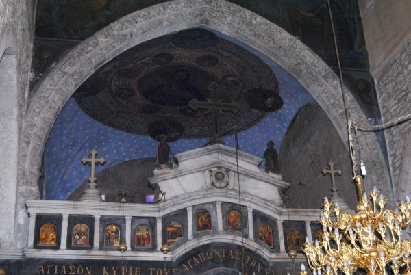 Το κεντρικό κλίτος της απολήγει σε ένα επίπεδο ιερό και τα πλευρικά σε τετράγωνα παρεκκλήσια χωρίς αψίδες δια μέσου τριών οξυκόρυφων τόξων. Το κεντρικό τόξο του ιερού διαθέτει ιδιαίτερα περίτεχνη γλυπτήδιακόσμηση.