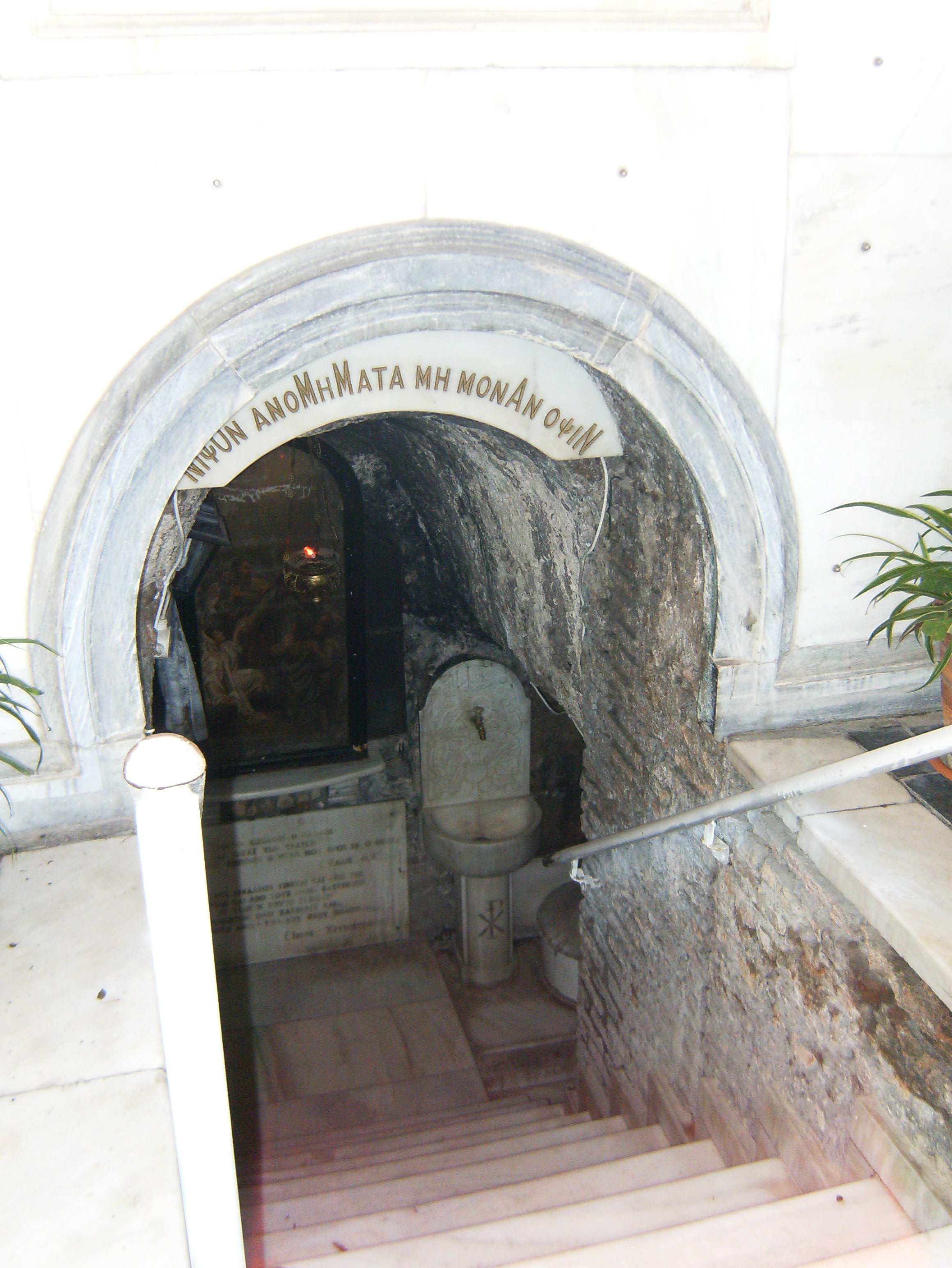 - Το τέμπλο είναι από σκαλιστό μάρμαρο όπως και ο άμβωνας.