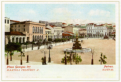 Η πλατεία Βασιλέως Γεωργίου του Α' είναι η κεντρική πλατεία της Πάτρας. Δημιουργήθηκε επί Ιωάννη Καποδίστρια με σχέδιο που συνέταξε ο απεσταλμένος του Σταμάτης Βούλγαρης το 1829.Κατά καιρούς έχει αλλάξει πολλές ονομασίες. Ξεκίνησε σαν Δημοκρατίας, άλλαξε σε Καλαμογδάρτη, Όθωνος, Κεντρική, Θωμόπουλου, Εθνική, Παλιγγενεσίας και από το 1863 Γεωργίου του Α'.Το 1876 τοποθετήθηκαν τα δύο συντριβάνια που υπάρχουν και σήμερα, τα οποία παραγγέλθηκαν στην Ιταλία και κόστισαν 70.000 δραχμές. Εκεί ο Αντώνης Καλαμογδάρτης ανέγνωσε το πρώτο Σύνταγμα της Ελλάδας το 1843.