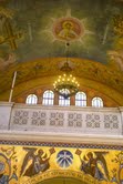 - Τα χρώματα των αγιογραφιών είναι φωτεινά και δεν έχουν αυστηρά βυζαντινό ύφος. Στα χαμηλότερα σημεία υπάρχουν εξαίρετα ψηφιδωτά όπου ανέλαβε η Κατερίνα Κολέφα. Ο ναός έχει τρείς γυναικονίτες χωρητικότητας 500 ατόμων. Το δάπεδο είναι από χρωματιστά μάρμαρα που απεικονίζουν ζώα, ψάρια και φυτά.
