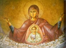 - Πάνω από το ιερό εντυπωσιακή είναι η αγιογραφία της Παναγίας της Πλατυτέρας που προστατεύει την Πάτρα.