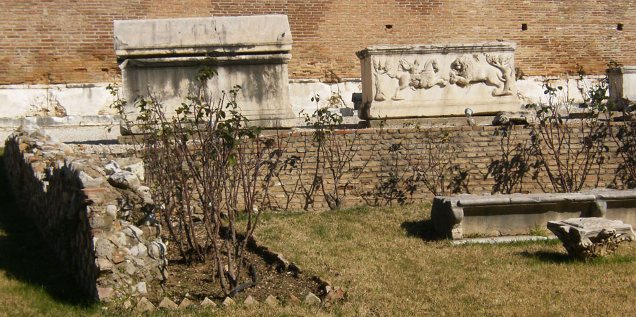 | Οι σαρκοφάγοι έξω από το Αρχαίο Ωδείο |