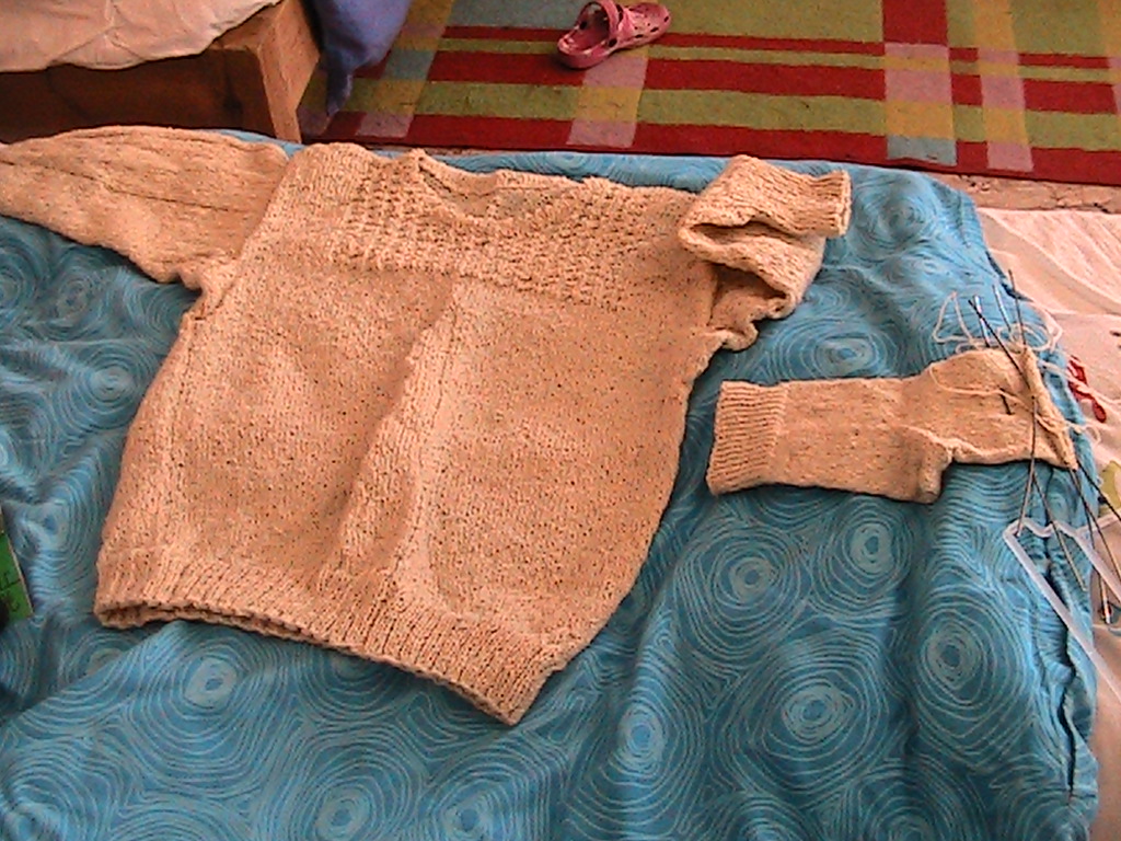 Και δεν τους τσίμπαγε, ήταν θέμα συνηθείας. Καλοκαίρι ακόμα, ζέστη δεν καταλαβαίνανε. Ο πατέρας μου φορούσε μόνο το χειμώνα. Το καλοκαίρι φορούσε βαμβακερή. Κάποια ρούχα τα ράβανε. Υπήρχανε κεντίστρες. Όσες ξέρανε τα κάνανε μόνες τους, οι άλλες πηγαίναν σε κεντίστρες. Η οικοκυρική σχολή φτιάχτηκε αργότερα. Κάποιες υφαίνανε και στον αργαλειό. Κουρελούδες, χράμια, κιλίμια, ουγιωτά. Το ουγιωτό είναι με πολύ ψιλή κλωστή. Και κάθε δύο δάχτυλα έχει μια στριμμένη κλωστή και κάνει ριγέ κι όταν θέλεις το κάνεις καρώ. Αλλά είναι πολύ λεπτή κλωστή. Υφαίνανε και σοκόφικα με τέσσερα ποδαρικά. Χράμια.