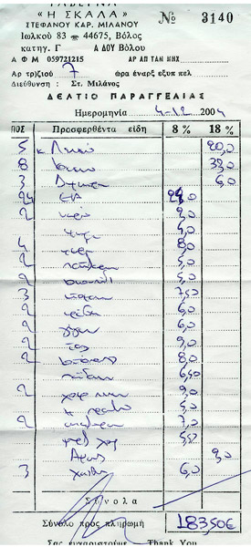 Σε κάποιο σημείο του κειμένου αναφέρθηκε ότι στη ταβέρνα της Ερμού μεταξύ των άλλων αντικειμένων υπήρχε στον τοίχο και ένας μαυροπίνακας μικρών σχετικά διαστάσεων. Πράγματι, ο πίνακας αυτός είχε τοποθετηθεί εκεί σαν ένα τεφτέρι χρεών από τους πελάτες. Αργότερα αντικαταστάθηκε με μπακαλοτέφτερο αλλά δεν έφυγε από τον χώρο του.