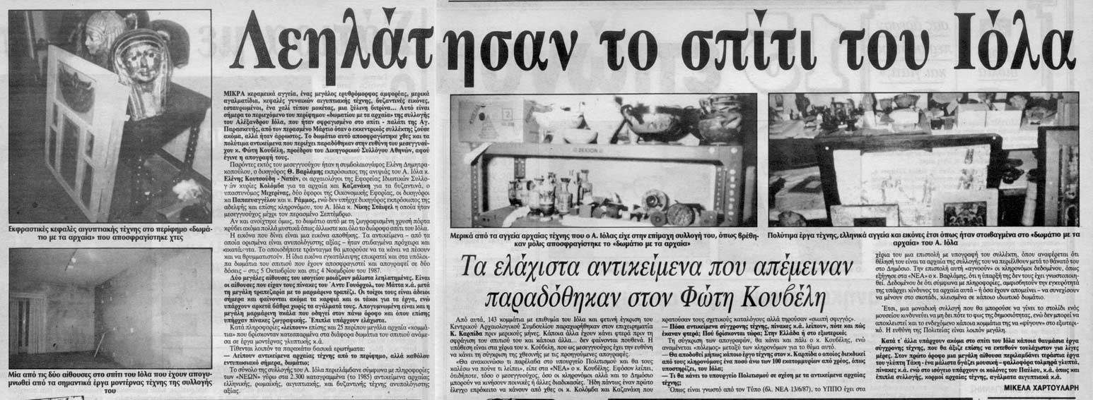 | Η διαθήκη του Ιόλα, σ' εφημερίδα της εποχής, "ΝΕΑ" 1987 |