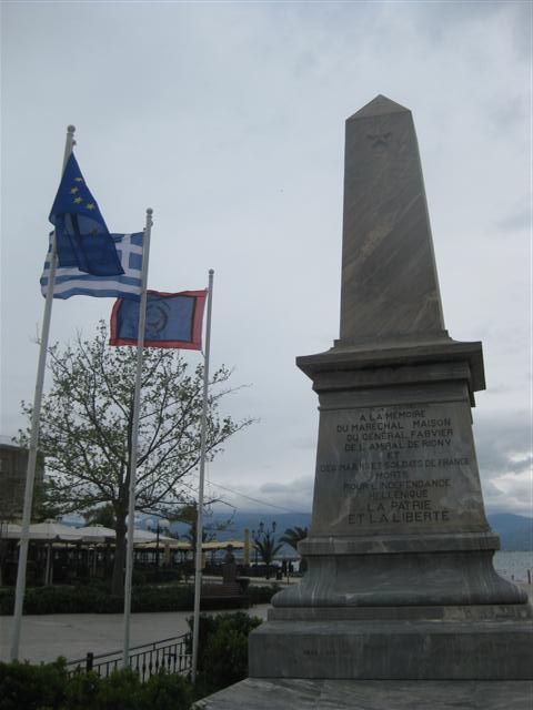 Το έργο: Ανεγέρθηκε το 1903 με φροντίδα του εφέτη Νικολάου Κωτσάκη στη μνήμη των Γάλλων Φιλελλήνων που αγωνίστηκαν και έπεσαν πολεμώντας στο πλευρό των Ελλήνων στη διάρκεια της Επανάστασης. Έχει τη μορφή οβελίσκου από γκρίζο μάρμαρο, σχεδιάστηκε στο Παρίσι από τους Βεζώ και Δεβέρν και κατασκευάστηκε στην Αθήνα, στο μαρμαρογλυφείο Χαλδούπη. Στη βάση του οβελίσκου, στη μια πλευρά κοσμείται με ανάγλυφη παράσταση με τις προσωποποιήσεις της Ελλάδας και της Γαλλίας (ως Αθηνά και Δημοκρατία) και στην άλλη πλευρά υπάρχει αναθηματική επιγραφή που αναφέρονται ο στρατάρχης Μαιζόν, ο στρατηγός Φαβιέρος, ο ναύαρχος Δεριγνύ, οι ναύτες και οι στρατιώτες της Γαλλίας.