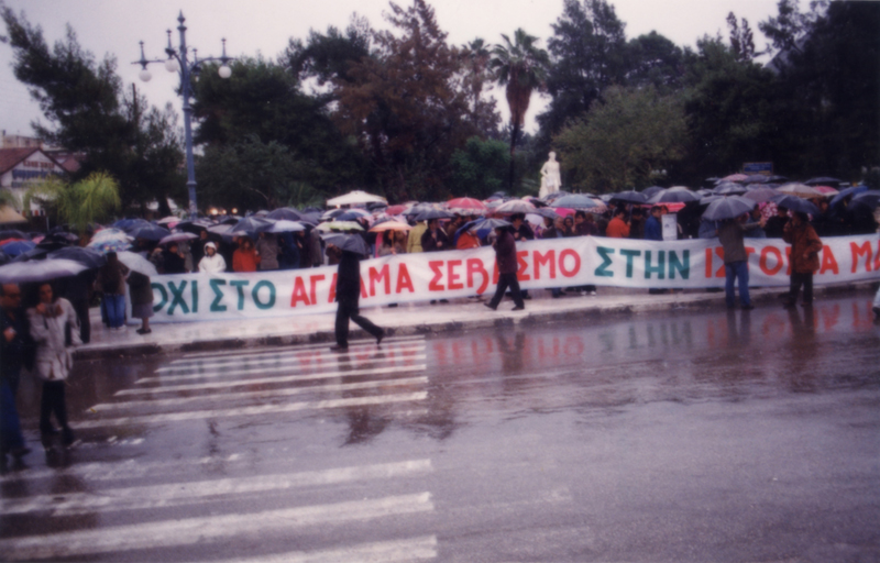 | Συγκέντρωση διαμαρτυρίας στα αποκαλυπτήρια του μνημείου. |