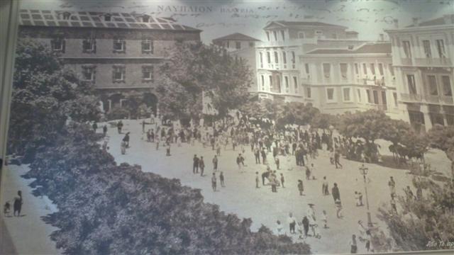 Μετά την απελευθέρωση, την περίοδο που το Ναύπλιο ήταν πρωτεύουσα του ελληνικού κράτους, στη σκιά του γέρικου πλατάνου, εκτός από παρέες που περνούσαν εκεί το χρόνο τους, συναντούσε κανείς ρήτορες, πολιτικούς που αγόρευαν, αλλά και τους λεγόμενους «αναφορογράφους». Οι τελευταίοι αναλάμβαναν με κάποια αμοιβή τη σύνταξη αιτήσεων και αναφορών προς την Κυβέρνηση για λογαριασμό αναλφάβητων ανθρώπων. Σε αρκετούς από τους μεγάλους αγωνιστές της Επανάστασης (Νικηταράς, Θ. Κολοκοτρώνης) παραχωρήθηκαν οικόπεδα και σπίτια γύρω από την πλατεία. Από τα μπαλκόνια της πλατείας μπορούσε να ακούσει κανείς λόγους με πολιτικό περιεχόμενο, όπως της Καλλιόπης Παπαλεξοπούλου, που παρακινούσε τους Ναυπλιώτες να ξεσηκωθούν εναντίον της απολυταρχίας του Όθωνα.