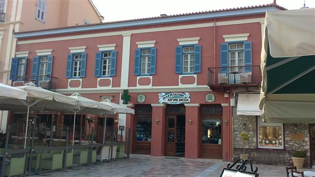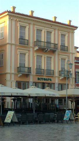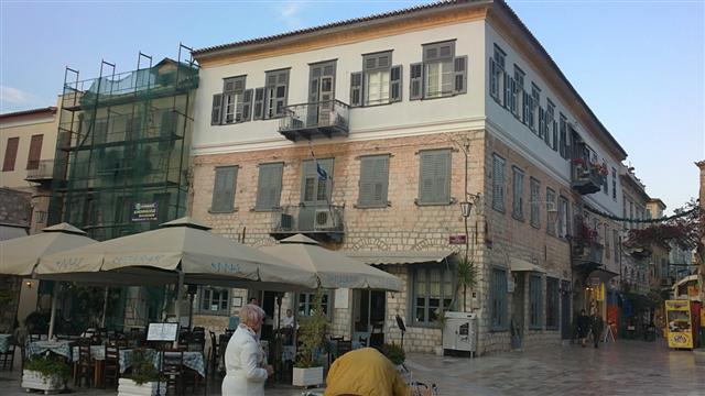 Το κτήριο που στο ισόγειό του στεγάζεται εστιατόριο εδώ και πολλές δεκαετίες, με διάφορες κατά καιρούς ονομασίες (σήμερα «Ελλάς»), είναι ενετικό κτίσμα με μεταγενέστερες προσθήκες. Το 1839 δεν υπήρχε δεύτερος όροφος. Το 1888 ο δεύτερος όροφος λειτουργούσε ως ξενοδοχείο, ενώ στον πρώτο βρισκόταν η λέσχη της «καλής κοινωνίας» του Ναυπλίου. Από τα μπαλκόνια του έχουν εκφωνήσει λόγους διάφοροι πολιτικοί στη διάρκεια προεκλογικών συγκεντρώσεων στο παρελθόν.