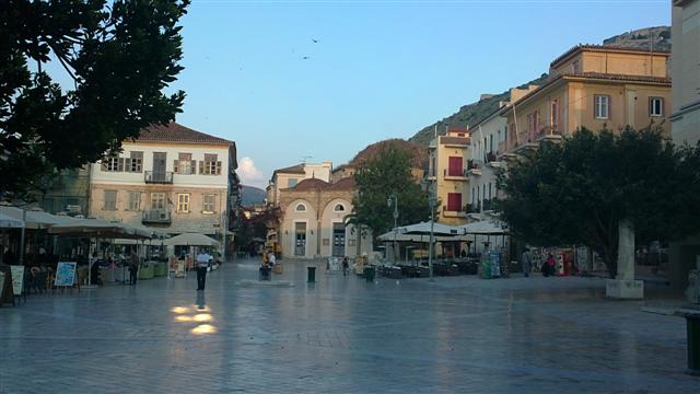 Το σχέδιο της πλατείας έχει κι αυτό αλλάξει ουσιαστικά με την πάροδο των χρόνων. Υπήρχε ήδη από την Πρώτη Τουρκοκρατία και η πρώτη αλλαγή στο σχέδιό της έγινε κατά τη Β΄ Περίοδο της Ενετοκρατίας (1686-1715). Τότε οι Βενετσιάνοι διαμόρφωσαν την κεντρική πλατεία δίνοντάς της σαν τέρμα το Οπλοστάσιο ή Αρσενάλε (σημερινό Αρχαιολογικό Μουσείο), χωρίς όμως να προφτάσουν και να της δώσουν την οριστική της μορφή, αφού ξέσπασε νέος πόλεμος με τους Τούρκους. Με την άφιξη του Καποδίστρια, η πλατεία απέκτησε τις σημερινές της διαστάσεις σε σχέδια των Βαλλιάνου και Βούλγαρη το 1832, και την ίδια εποχή διανοίχτηκε η οδός Βασιλέως Κωνσταντίνου (ή Μεγάλος Δρόμος) που οδηγεί αξονικά στο κέντρο της πλατείας. Στους νεότερους χρόνους διαμορφώθηκε σε νεοκλασική πλατεία με δρόμους περιμετρικά, ενώ τη δεκαετία του ’70 η πλατεία ανακατασκευάστηκε και πήρε τη σημερινή της μορφή, που την τοποθετεί πολύ κοντά στα μεσαιωνικά πρότυπα.