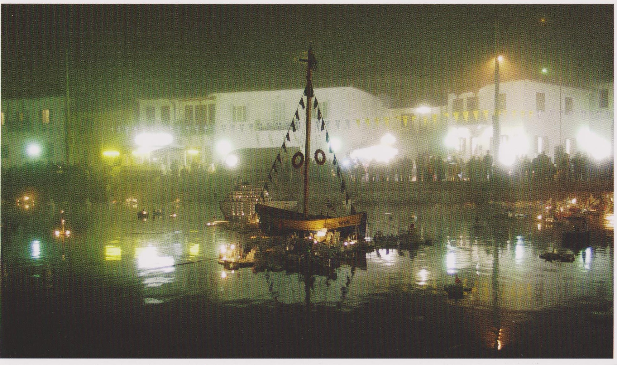 Σήμερα, το έθιμο αυτό συνεχίζεται από δεκάδες παιδιά της πόλης. Την παραμονή της γιορτής τα μικρά παιδιά ρίχνουν καραβάκια στολισμένα με κεριά στη λιμνούλα. Γίνεται μάλιστα και διαγωνισμός και βραβεύεται το καλύτερο από αυτά.
