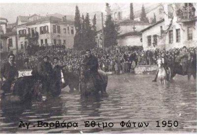 | Δεκαετία του 1950· το έθιμο της κατάδυσης του Σταυρού στα νερά της Αγίας Βαρβάρας. |