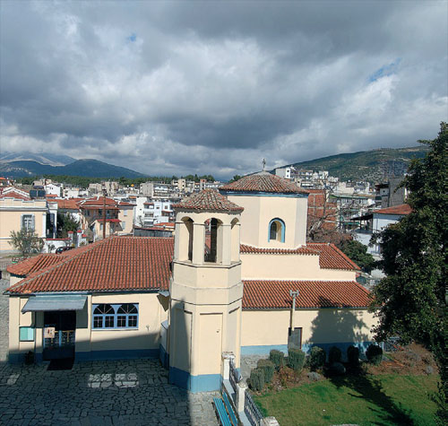 Ο ναός είναι πιθανόν αρχικά να ήταν αφιερωμένος στην Κοίμηση της Θεοτόκου. Κατά τη διάρκεια της τουρκοκρατίας είχε μετατραπεί σε μουσουλμανικό τέμενος με την ονομασία "Μπέη τζαμί". Πότε ακριβώς έγινε αυτή η αλλαγή δεν μας είναι γνωστό. Για την εξυπηρέτηση των νέων αναγκών προστέθηκε τότε στη δυτική πλευρά του κτιρίου ο ευρύχωρος προθάλαμος, το επίπεδο του οποίου είναι κατά δύο μέτρα υψηλότερο από το επίπεδο του παλαιού ναού. Ο ακάλυπτος χώρος στη βόρεια πλευρά του ναού υπήρξε τούρκικο νεκροταφείο, ενώ το σημερινό καμπαναριό της αποτελούσε βάση μιναρέ.