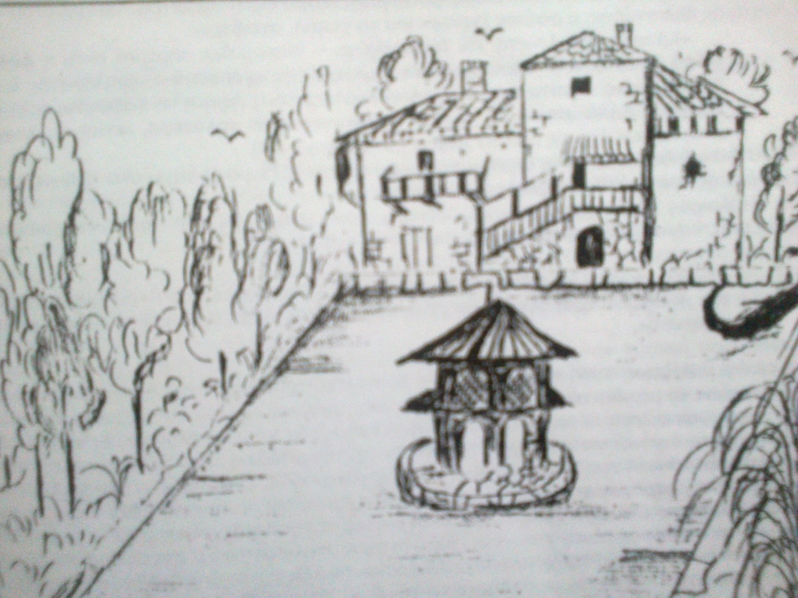 | Σεράι: η λίμνη και το κιόσκι. Σκίτσο |